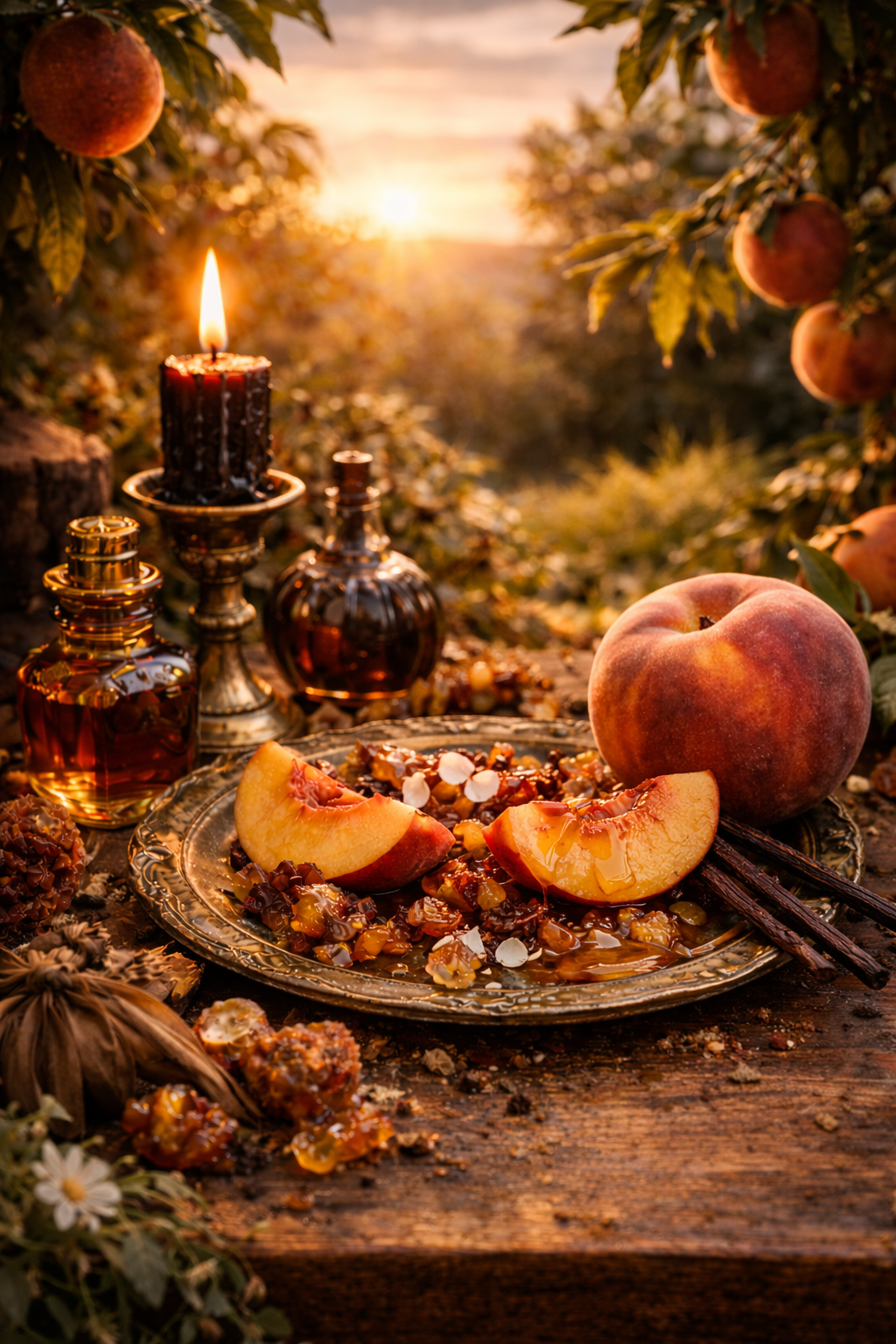 A fruity and gourmand fragrance, ideal for summer, inspired by sun-drenched orchards and the bucolic world of the Shire. Perfect for those seeking a natural, velvety, and sensual handcrafted perfume.