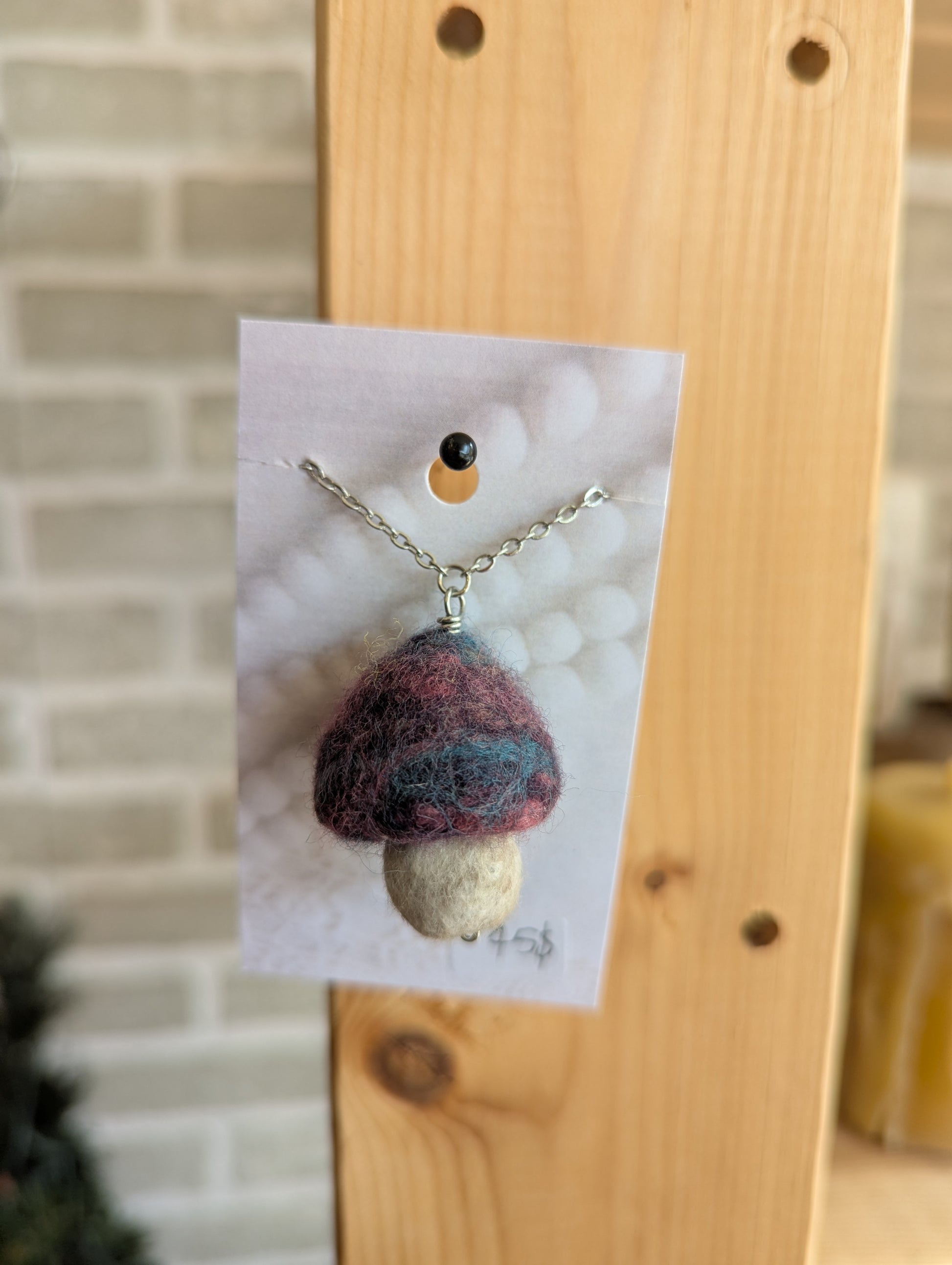 Its handmade felted merino wool pendant is ideal for wearing your favorite fragrance all day long.