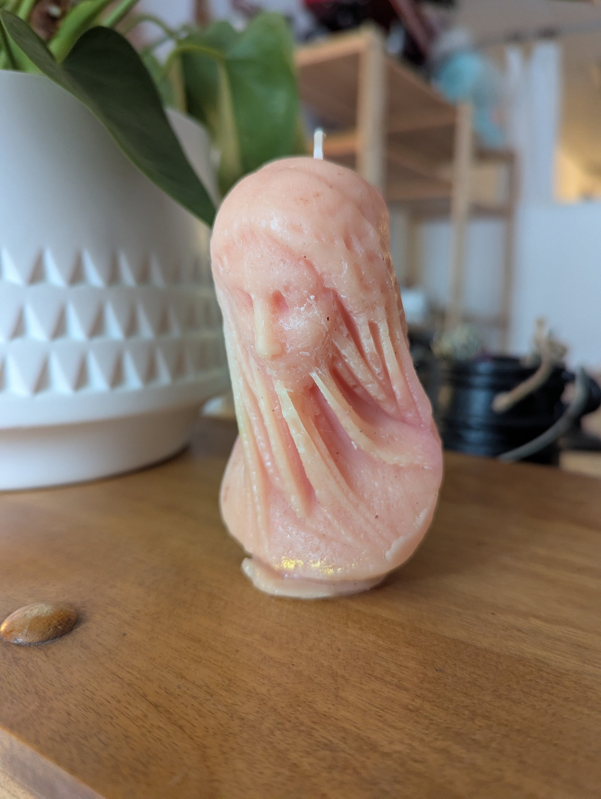 Bougie artisanale à base de cire d'abeilles, coulée à la main et parfumée avec des parfums naturels.